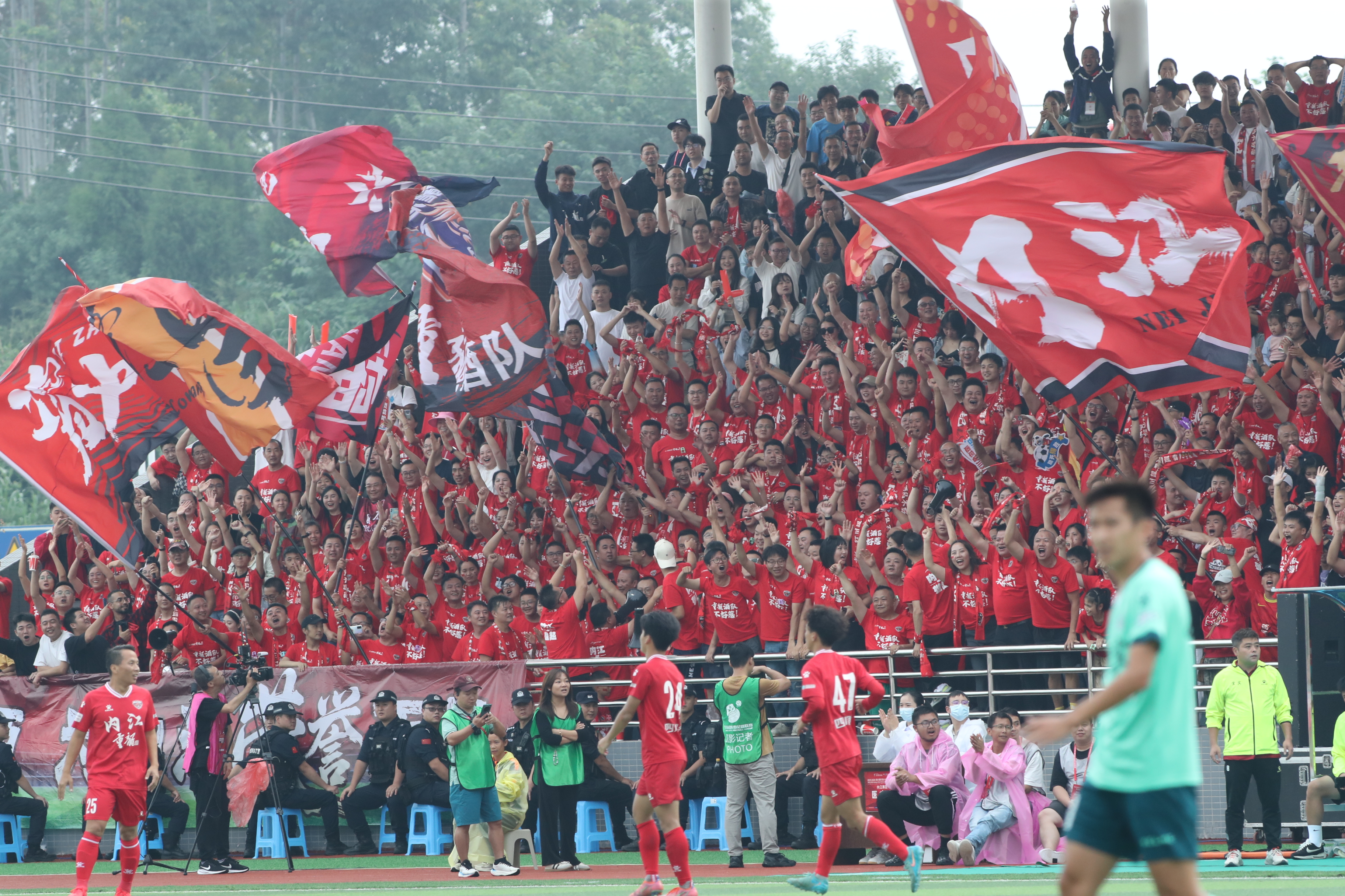 球员们在场上奋力拼搏,球迷们在台下呐喊助威,“内江雄起”“宜宾雄起”的加油声不绝于耳。