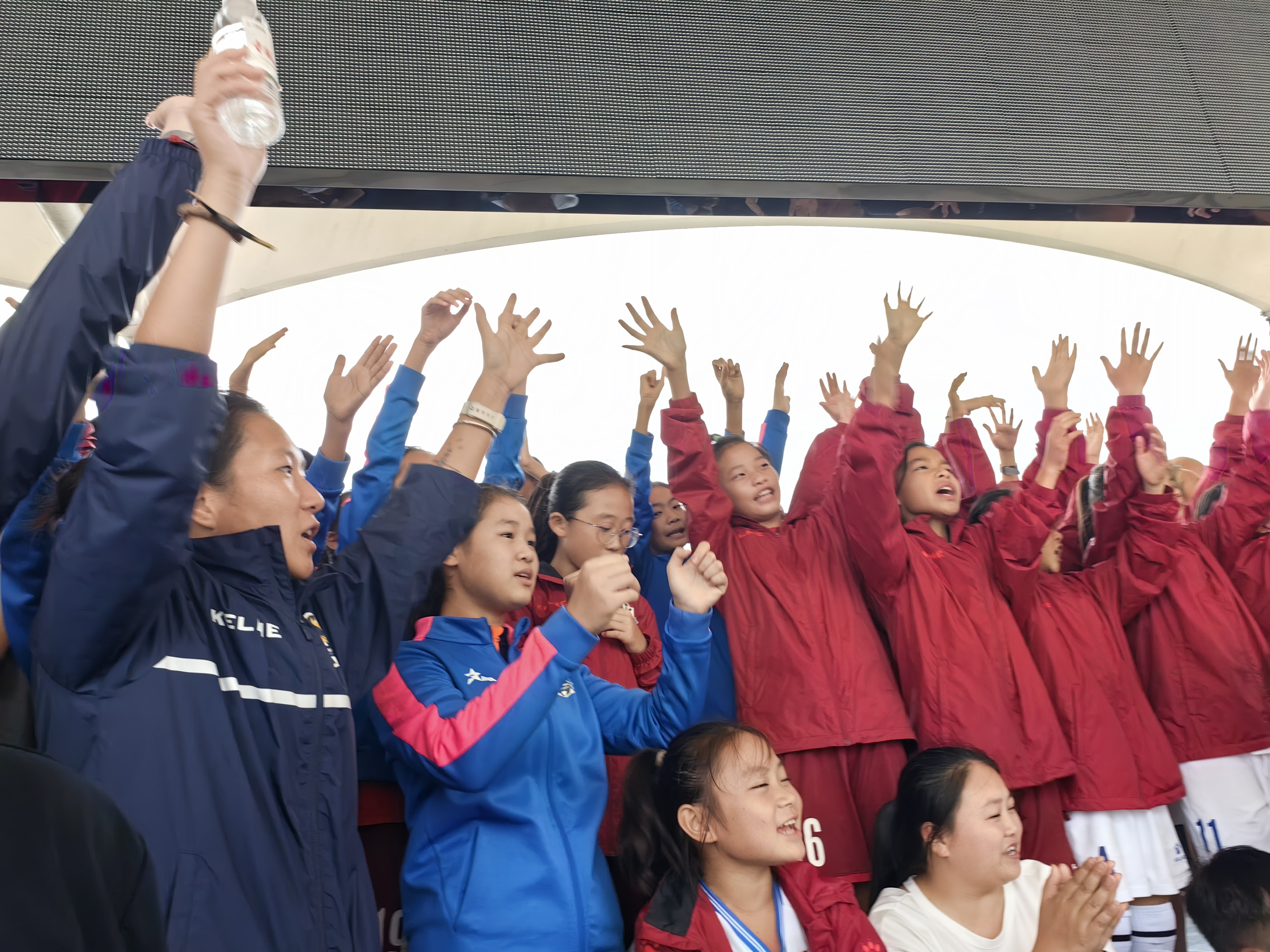 资中女足队员为内江队加油(摄影:黄晓庆)
